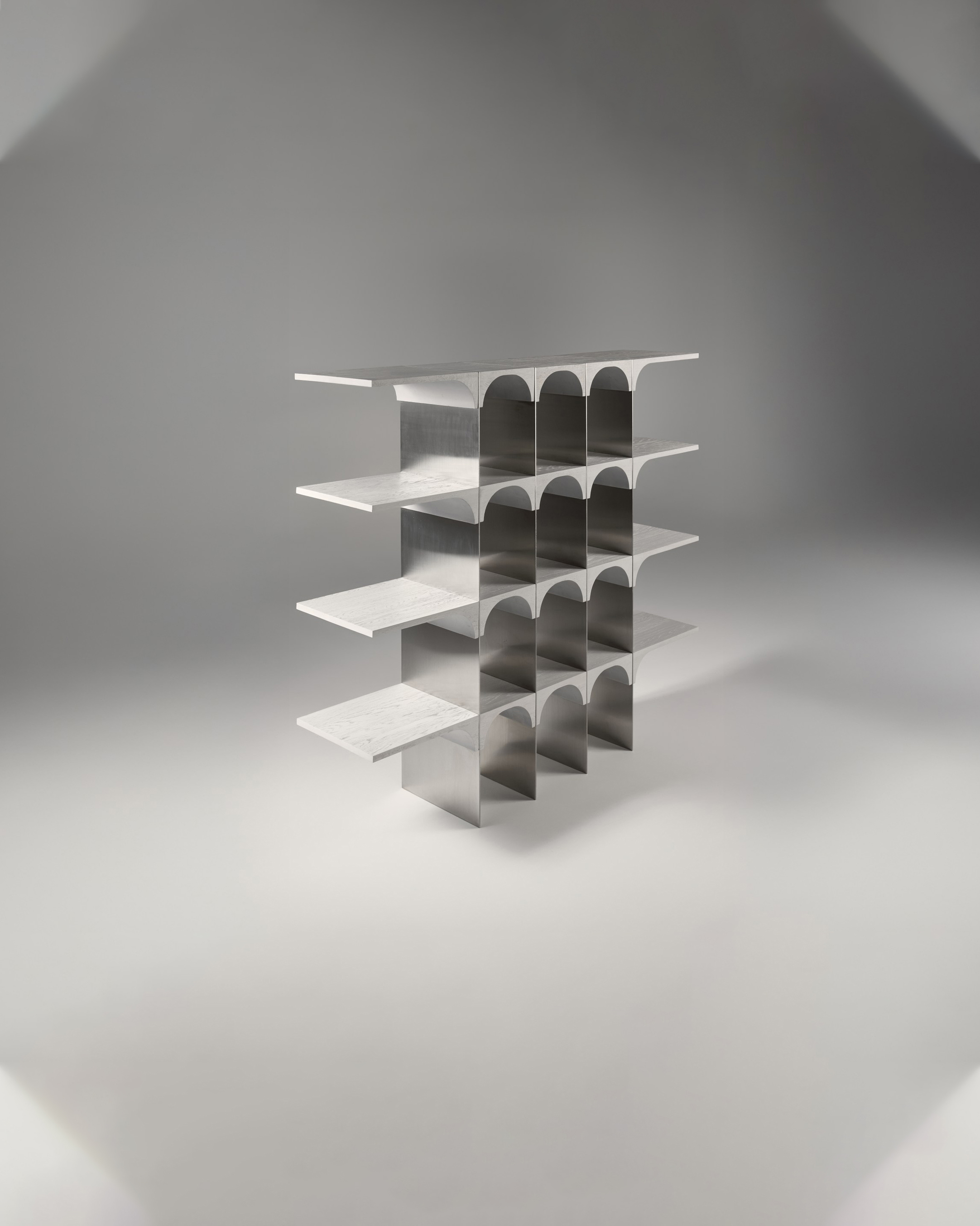 Defined by controlled proportions and material clarity, the collection explores the dialogue between brushed solid oak and stainless steel, warmth meeting precision, texture meeting reflection.